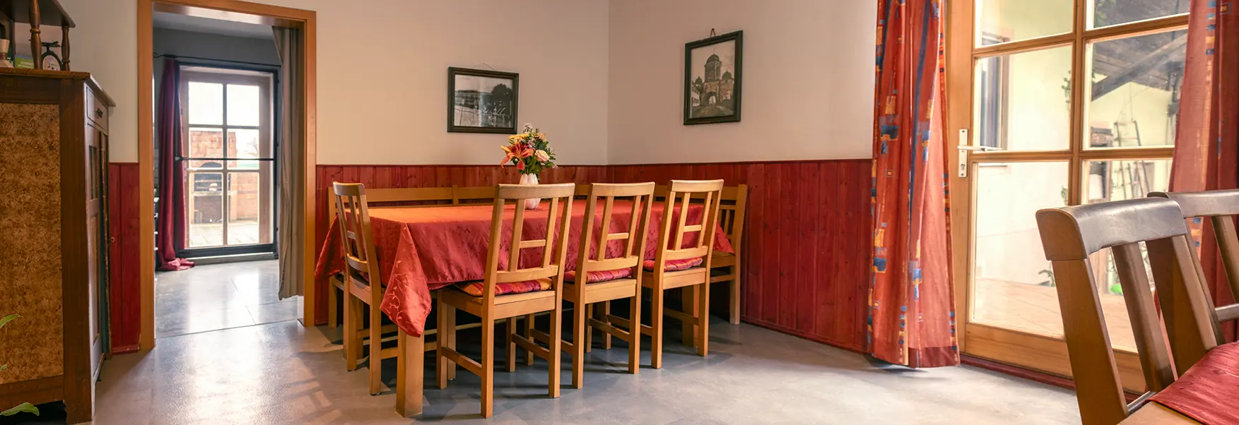 Der Aufenthaltsraum der Ferienwohnungen ist perfekt für Vereine oder Gruppen.